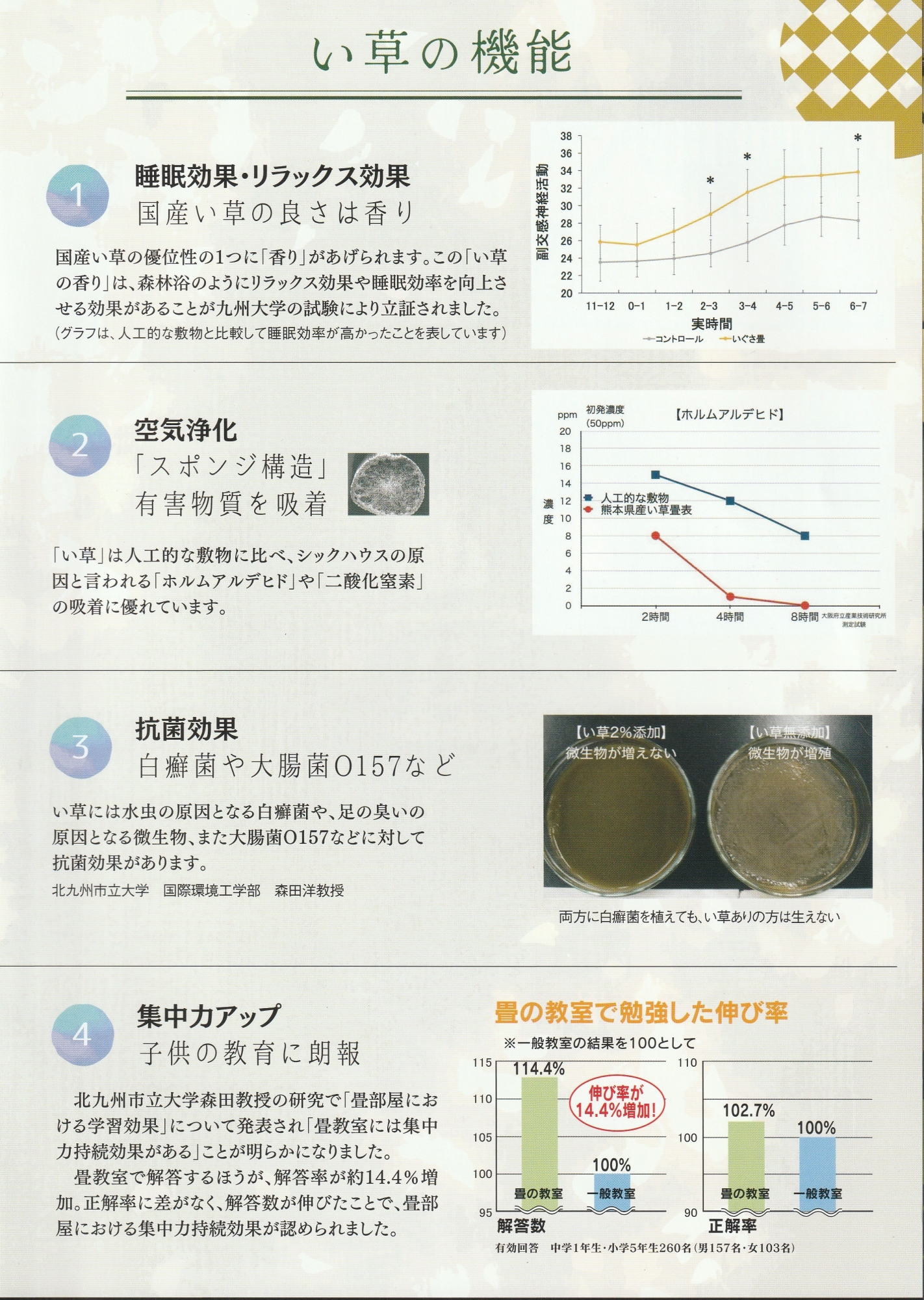 畳表(藺草)は、天然素材で出来た農産物の為、