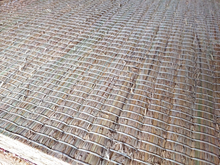 良く乾燥された稲わらを丁寧に積み重ね、6分間隔(約1.8㎝)と細かく縫ってある高級藁床です。